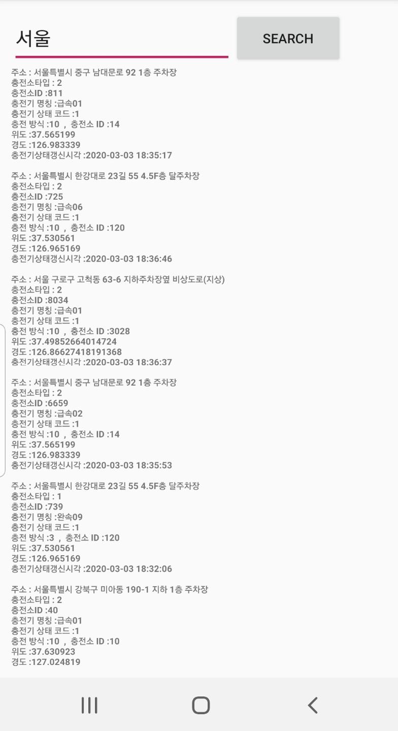 이렇게 서울의 전기차 충전소에 관한 내용이 나오면 안드로이드 스튜디오로 넘어가 만들어 보겠습니다.