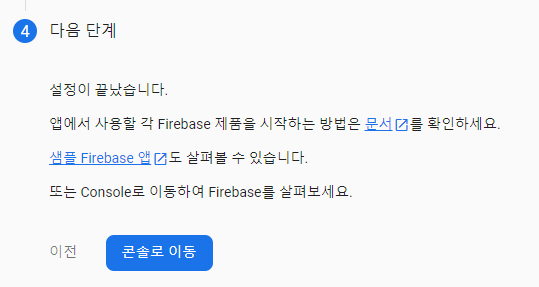 콘솔로 이동하여 연동을 마무리 한다.
