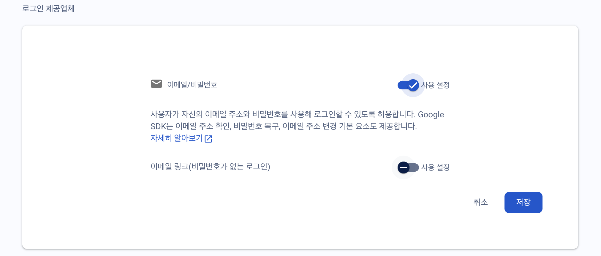 들어가서 시작하기를 눌러주고 이메일을 사용할 거니까 제공업체에서 이메일/비밀번호를 선택한다